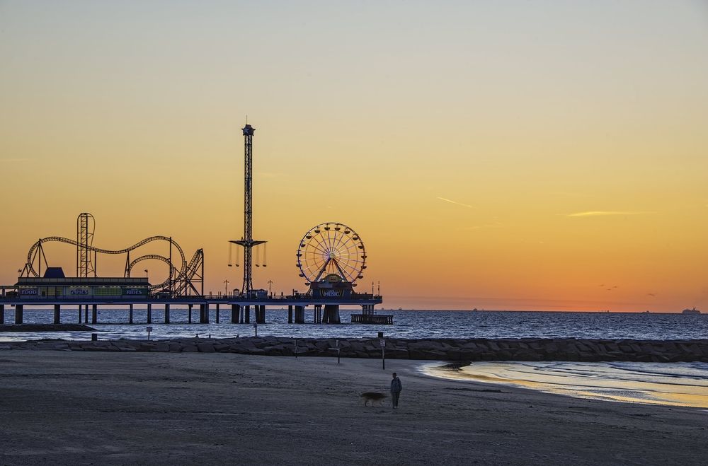 Galveston Beach Pier at Sunrise